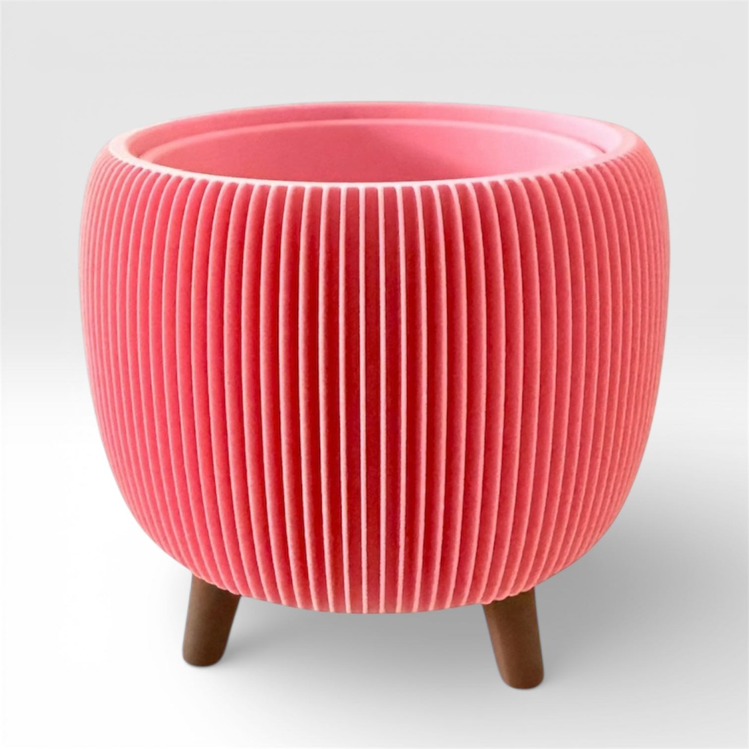 Showcase your indoor greenery with this Large Retro Ribbed Planter in Soft Pink matte. Its ribbed texture and raised feet add a stylish vintage touch. The included liner insert with drainage makes planting and maintenance straightforward, ensuring your plants thrive with ease. Perfect for adding a pop of colour and retro charm to any space. Made in the UK
